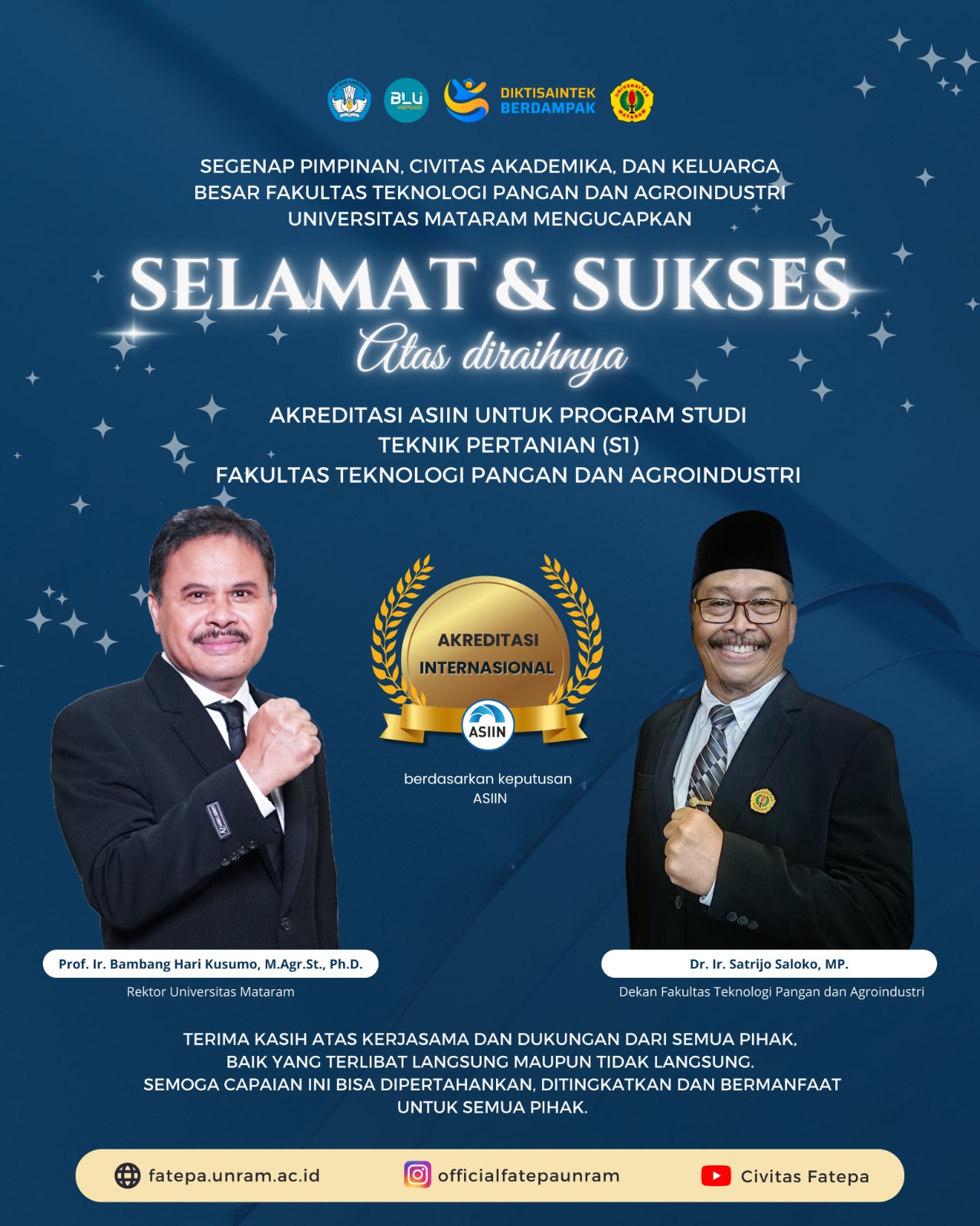 “Menjadi fakultas yang mampu mengembangkan ilmu, teknologi dan sumberdaya manusia yang bermutu, dinamis dan inovatif berbasis riset di bidang Pangan,Agroindustri dan Biosistem yang berwawasan lingkungan berdaya saing internasional tahun 2025.”