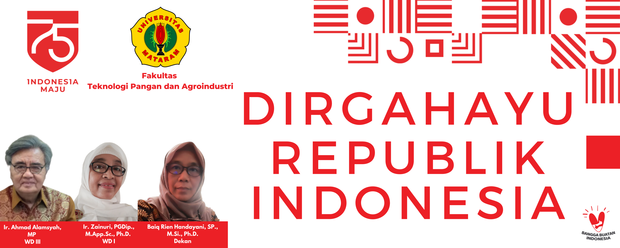 Segenap Pimpinan dan Civitas Akademik Fakultas Teknologi Pangan dan Agroindustr Universitas Mataram Mengucapakan DIRGAHAYU REPULIK INDONESIA ke 75 INDONESIA MAJU