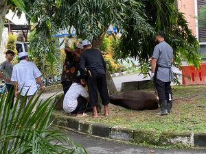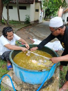 Salah satu hal yang menjadi perhatian utama dalam kegiatan ini adalah pengelolaan limbah organik dari limbah pemotongan hewan kurban. Kotoran sapi hasil penyembelihan tidak dibuang sembarangan, tetapi dikumpulkan untuk dimanfaatkan sebagai bahan baku biogas. Langkah ini sejalan dengan semangat ramah lingkungan dan pemanfaatan sumber daya berkelanjutan yang terus dikampanyekan oleh Fatepa Unram dalam berbagai aktivitas Tridarma.