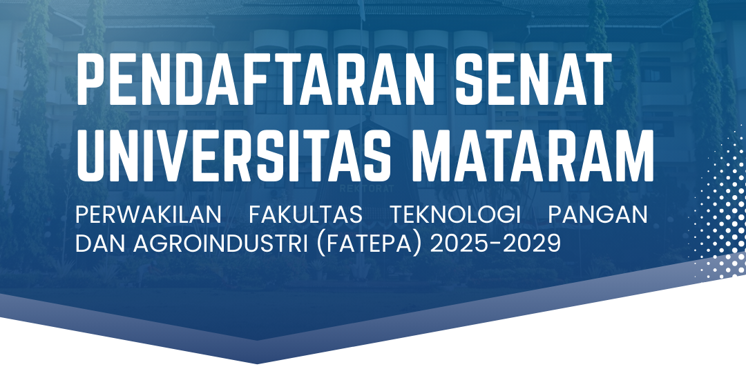Perubahan Jadwal dan Tim Pengampu MK Semester Ganjil TA. 2025-2026 By |2025-08-15T19:26:10+08:00August 15th, 2025|Akademik, Pengumuman| Share This Story, Choose Your Platform! FacebookXBlueskyRedditLinkedInWhatsAppTelegramTumblrPinterestXingEmail Related Posts Pendaftaran Calon Anggota Senat Universitas Mataram Perwakilan Fakultas Teknologi Pangan dan Agroindustri Gallery Pendaftaran Calon Anggota Senat Universitas Mataram Perwakilan Fakultas Teknologi Pangan dan Agroindustri August 28th, 2025 | 12 Comments JADWAL KULIAH SEMESTER GANJIL TA. 2025/2026 Gallery JADWAL KULIAH SEMESTER GANJIL TA. 2025/2026 July 30th, 2025 | 0 Comments JADWAL KULIAH SEMESTER ANTARA (KSA) GENAP TA. 2024/2025 Gallery JADWAL KULIAH SEMESTER ANTARA (KSA) GENAP TA. 2024/2025 June 23rd, 2025 | 0 Comments JADWAL UAS GENAP TA. 2024/2025 Gallery JADWAL UAS GENAP TA. 2024/2025 May 26th, 2025 | 0 Comments Jadwal Ujian Tengah Semester (UTS) Genap 2024-2025 Gallery Jadwal Ujian Tengah Semester (UTS) Genap 2024-2025 March 20th, 2025 | 0 Comments