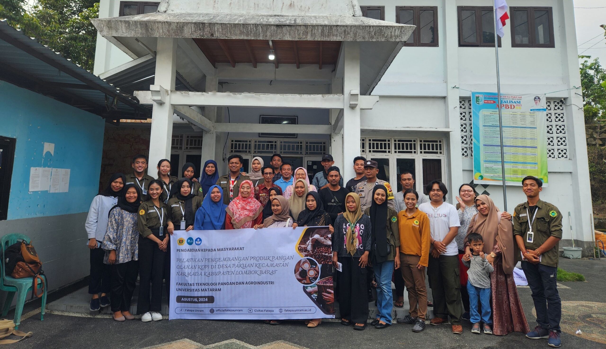 Mataram, 2 September 2024 – Kelompok Peneliti Bidang Ilmu Mikrobiologi dan Keamanan Pangan (KPBI) yang terdiri dari dosen dan mahasiswa Program Studi Ilmu dan Teknologi Pangan, Universitas Mataram, menyelenggarakan kegiatan Pengabdian kepada Masyarakat di Desa Pakuan, Kecamatan Narmada, Kabupaten Lombok Barat. Kegiatan ini mengusung tema “Pelatihan Pembuatan Nata dari Kulit Pisang sebagai Upaya Pemberdayaan Masyarakat Desa Pakuan.”